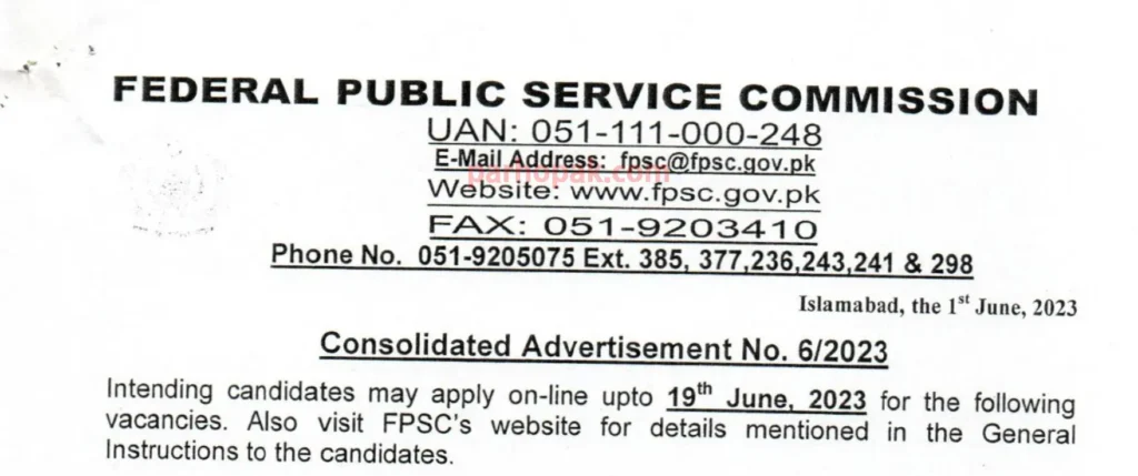 FPSC Jobs Advertisement June 6/2023 Apply Online