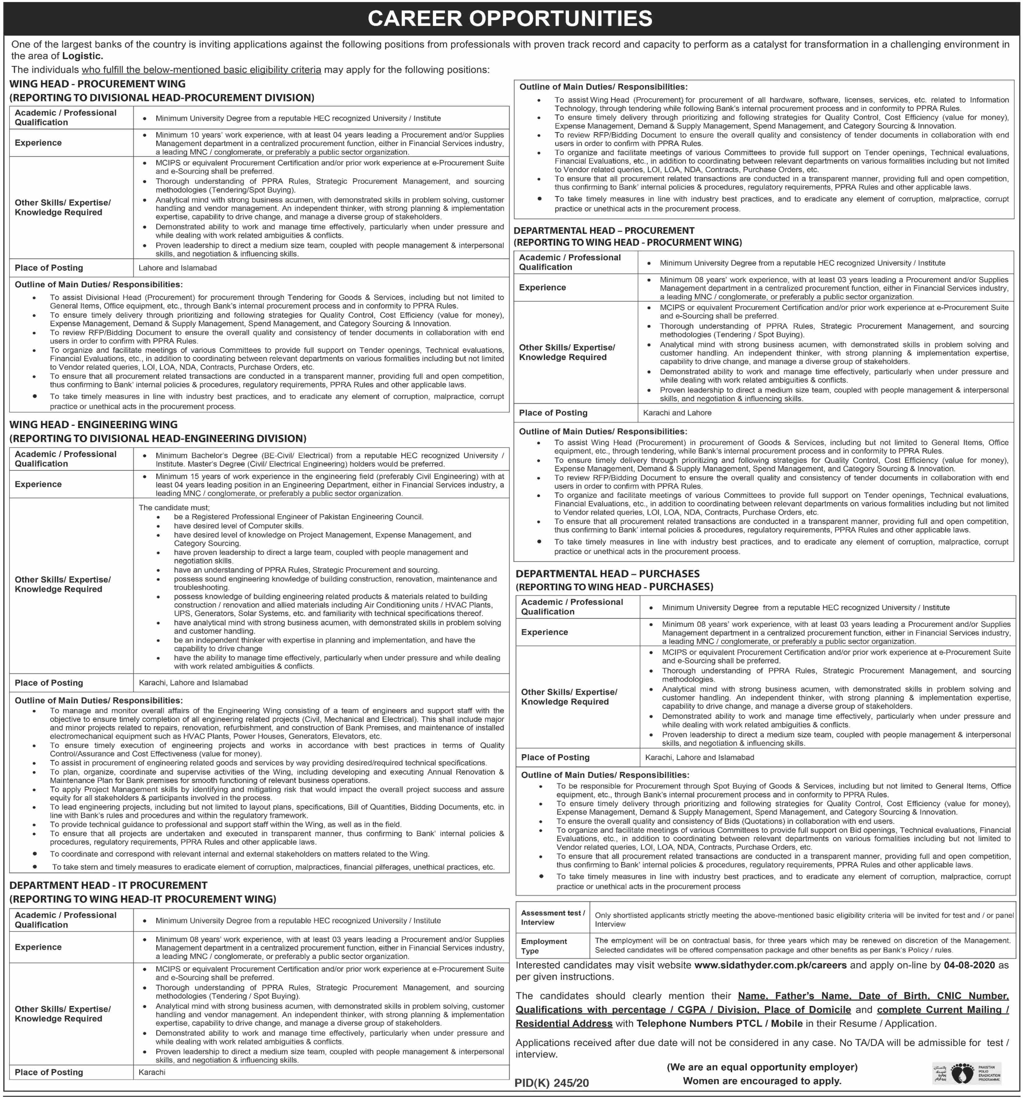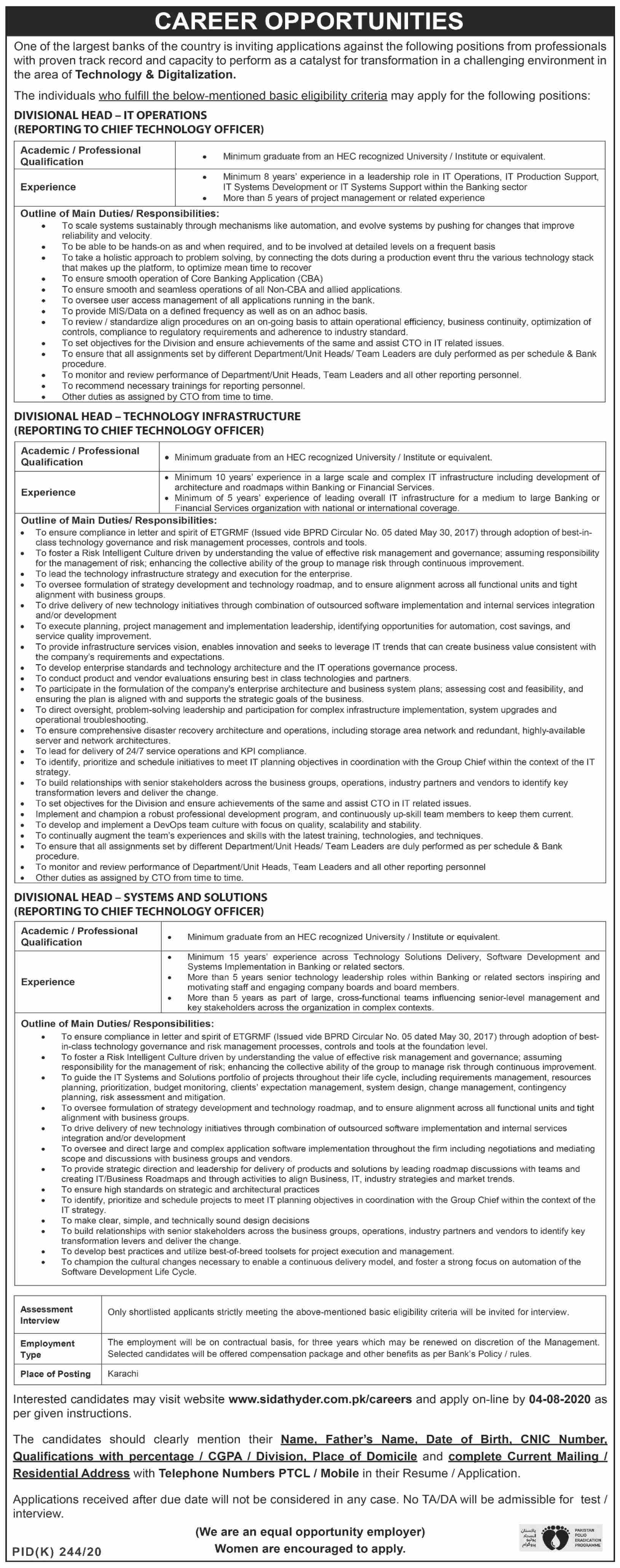 For Online Applications Visit http://www.sidathyder.com.pk/jobs & Apply Online.